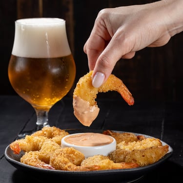 Filé de camarão selecionado recheado com Catupiry® original, empanado para máxima crocância — uma explosão de sabor em cada mordida.
