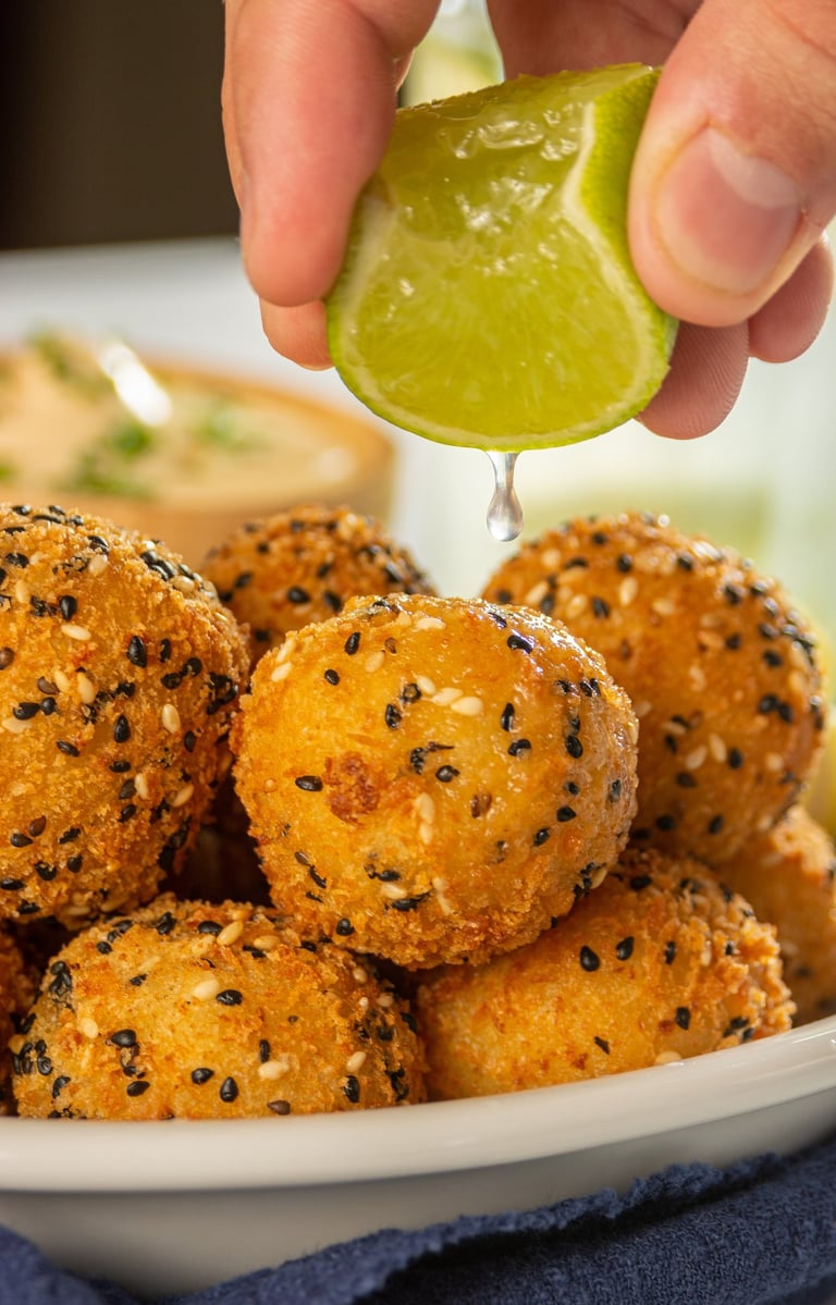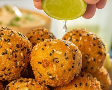 Massa de batata, recheada com pedaços suculentos de camarão e o verdadeiro Cream Cheese original. Cada bolinho é delicadamente envolvido por uma crosta de gergelim branco e preto, que garante sabor e textura únicos. Pré-frito e pronto para consumo — é só aquecer por 10 minutos na Airfryer. Um petisco sofisticado, perfeito para surpreender em qualquer ocasião.