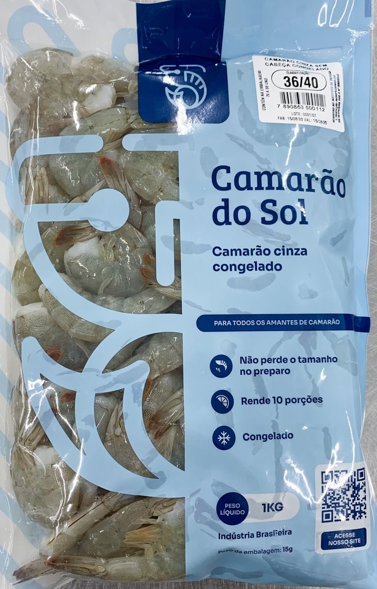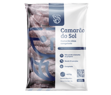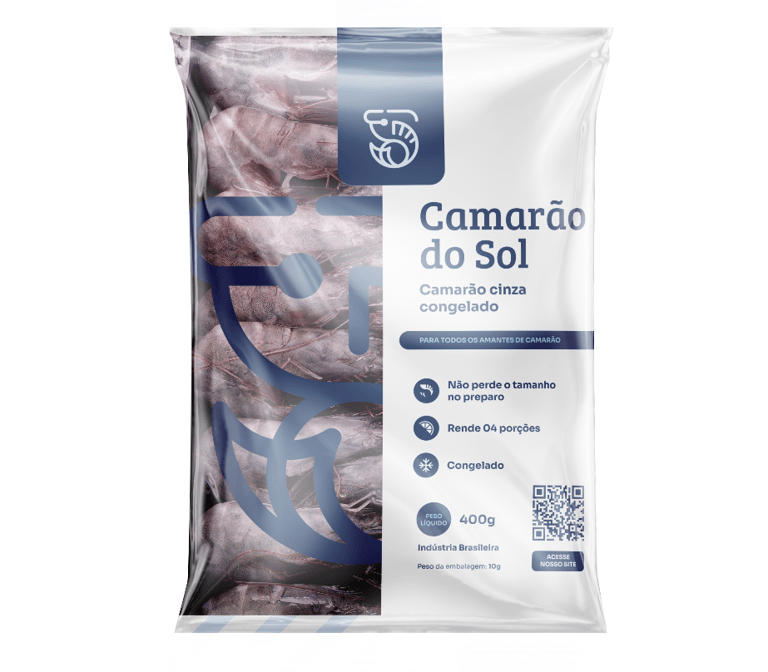 Embalagem de 400g exclusiva para revenda no varejo e supermercados. Ideal para o consumidor final, disponível nas versões: inteiro, sem cabeça ou descascado e eviscerado. Praticidade e sabor em um formato pensado para o seu ponto de venda.