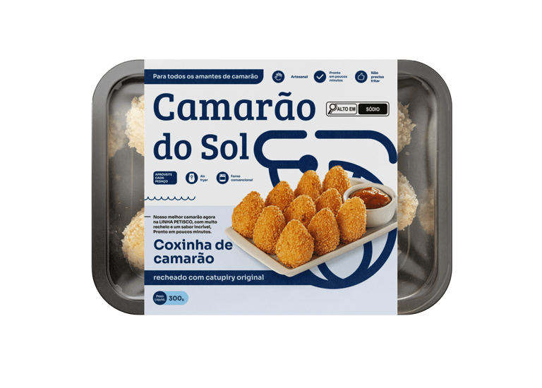 Além disso, nossa seleção inclui quatro petiscos irresistíveis — coxinha de camarão, bolinho de camarão, camarão empanado e camarão empanado recheado com catupiry — perfeitos para momentos especiais ou para encantar seus clientes.